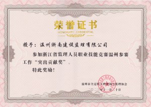 参加浙江省监理人员职业技能竞赛温州参赛工作“突出贡献奖”