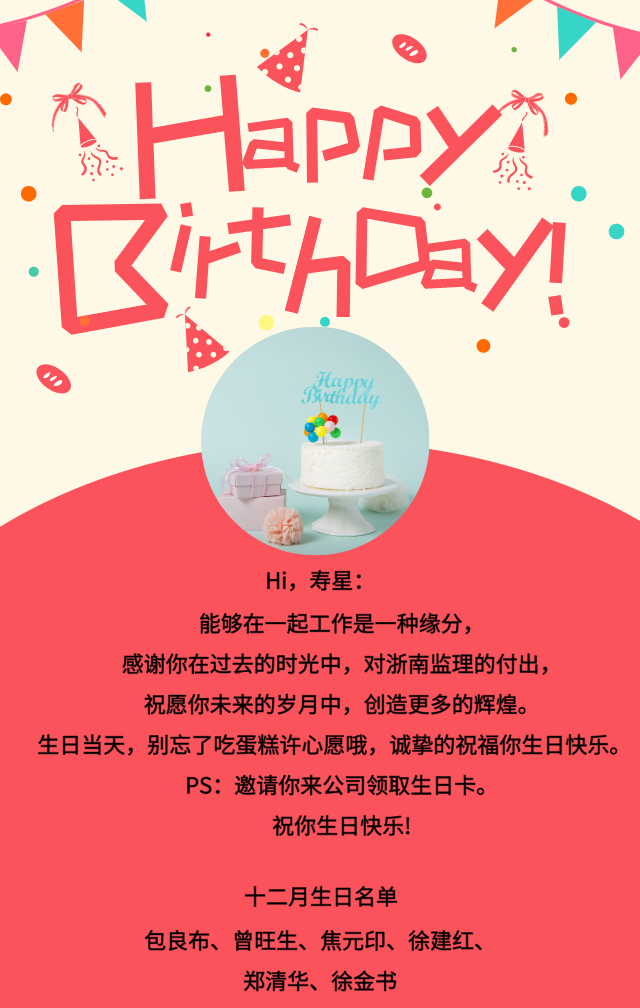 浙南员工12月份生日贺卡发放