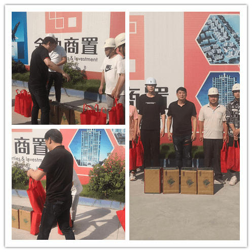 骄阳似火,持续高温。为确保夏季施工工作安全开展,6月21日下午,汤伟明董事长、总师办林琦以及浙南监理党支部书记黄静前往鹿城区藤桥新建社区建设工程等建设项目施工现场,看望和慰问现场建设付出辛勤汗水的一线工人,为他们送去了矿泉水、毛巾、清凉油、人丹等防暑降温用品,表达真挚的关心和问候。